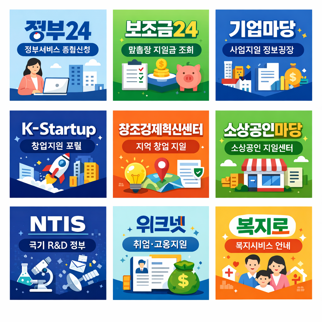 **정부지원금(보조금·창업·사업 지원 등)**은 여러 포털에 흩어져 있기 때문에,